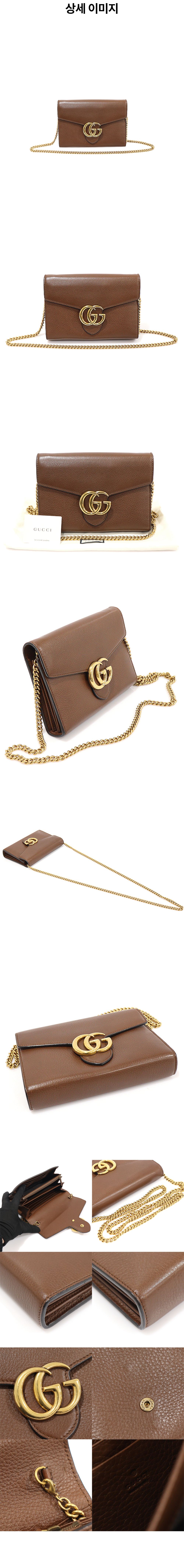구찌 401232 브라운 텍스쳐드 레더 GG 마몽 미니 체인 지갑 크로스백