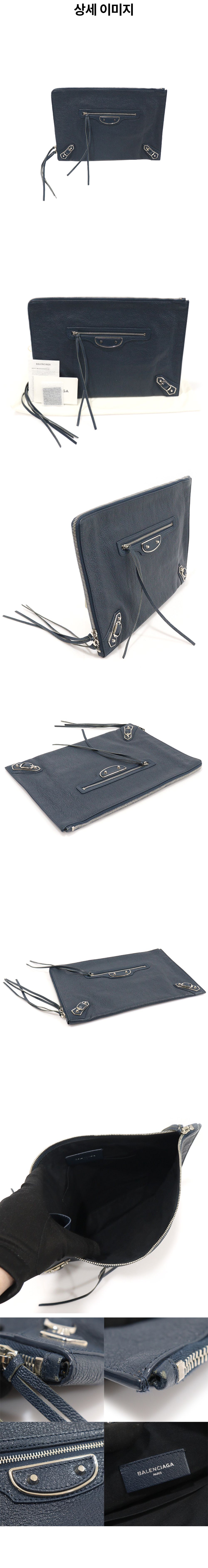 발렌시아가 390186 네이비 레더 은장 클래식 메탈 엣지 모터 클러치