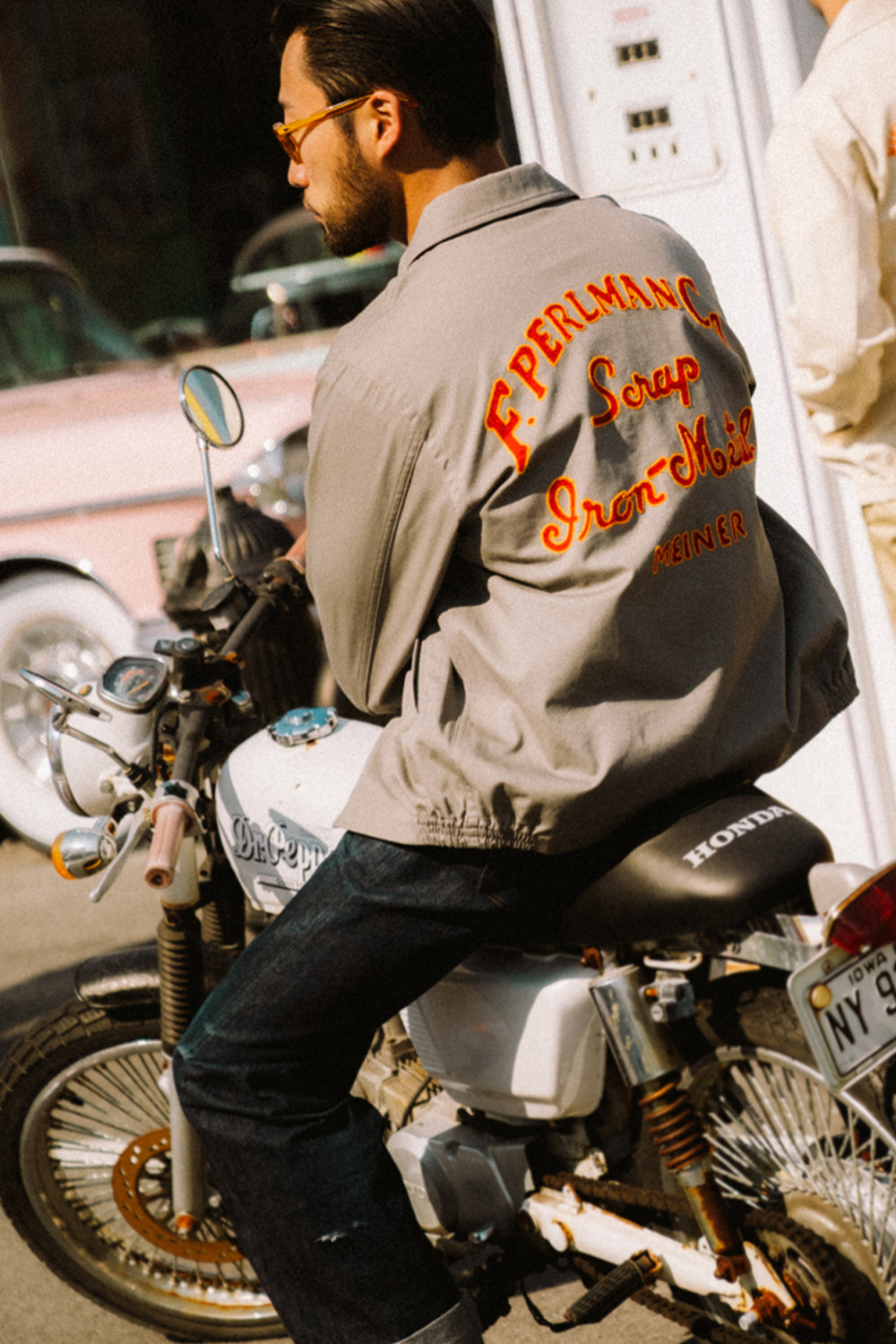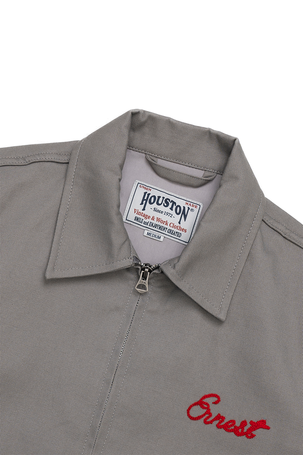 Houston Japan 51578 Harrington Jacket - Grey 두껍고 튼튼한 코튼 능직 원단을 사용한 50년대의 카 클럽 자켓 풍 자수의 해링턴 자켓입니다. 클래식한 실루엣과 체인 스티치 자수가 특징입니다. * Cotton 100% * 빛에 의한 제품의 색감 차이가 존재 할 수 있습니다. * Made in China