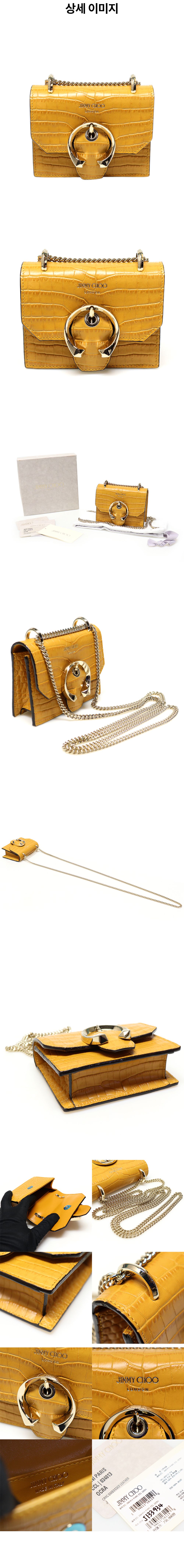 지미추 J133934 브라운 크록 엠보스드 레더 금장 체인 미니 파리스 크로스백