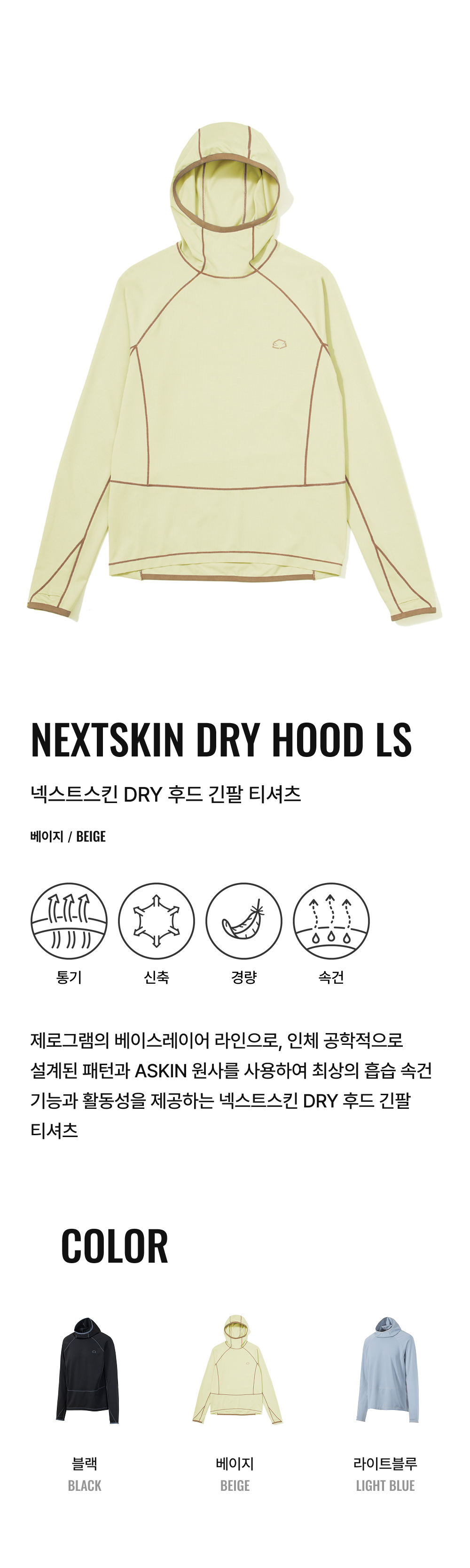 제로그램 넥스트스킨 DRY 후드 긴팔 티셔츠 베이지