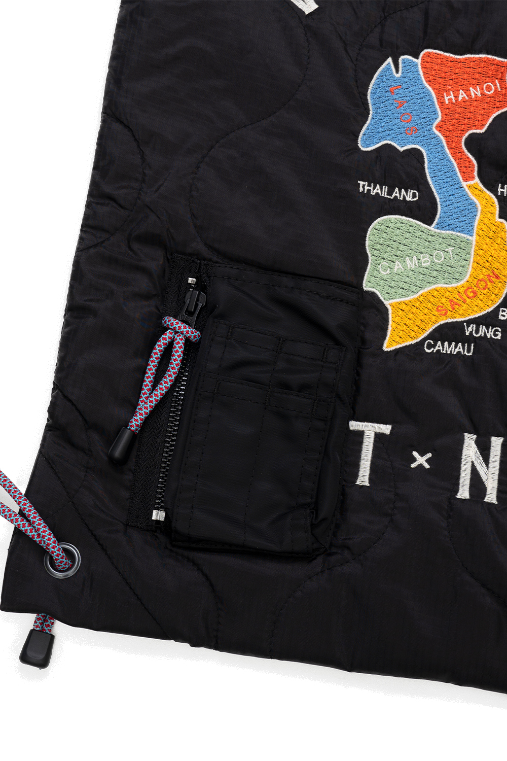 Houston Japan 6907 Military Quilt 2way Bag (Map) - Black 호박 퀼팅 원단을 사용한 2way 가방으로, 숄더백과 토트백으로 다양하게 활용할 수 있는 제품입니다. MA-1에서 착안한 시가렛 포켓으로 밀리터리 감성을 더한 제품입니다. 베트남 자켓 특유의 그래픽을 자수로 풀어내, 휴스턴만의 헤리티지와 위트를 담은 것이 특징입니다. * Shell : Nylon 100% * Liner : Nylon 100% * Filling : Polyester 100% * 빛에 의한 제품의 색감 차이가 존재 할 수 있습니다. * Made in China