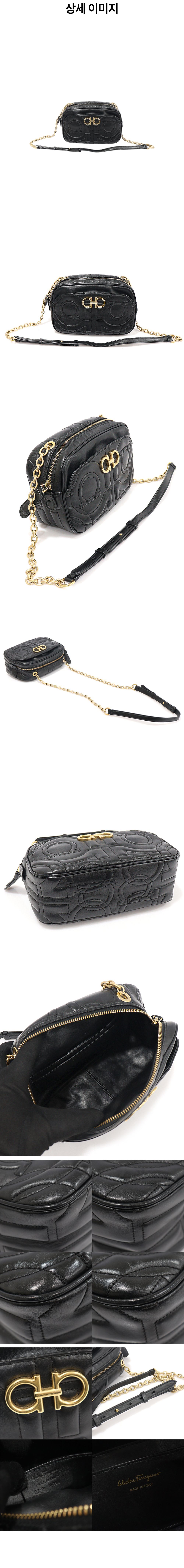 페라가모 21 H086 블랙 카프스킨 퀄팅 간치니 카메라 크로스백