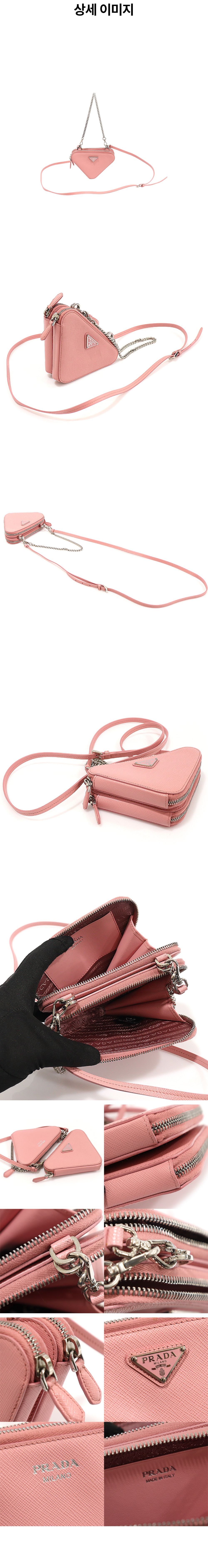 프라다 1NR015 핑크 사피아노 트라이앵글 미니 파우치 2WAY