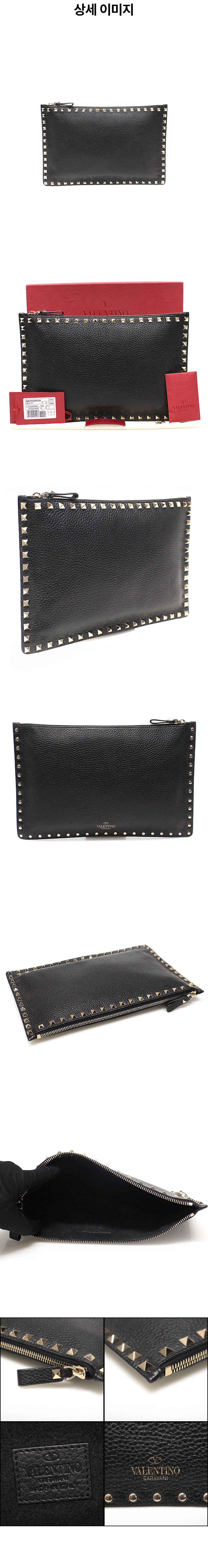 발렌티노 QW1P0269VSH 블랙 스탐파 알체 카프스킨 금장 락스터드 클러치