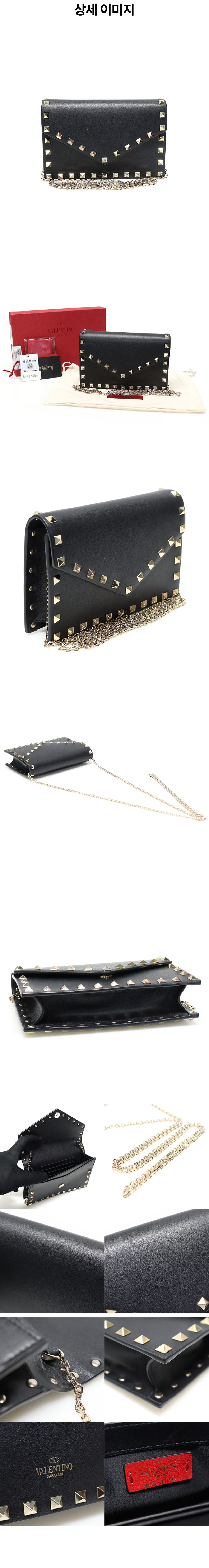 발렌티노 UW2P0Q58BOL 블랙 카프스킨 락스터드 엔벨로프 미니 파우치 체인 크로스백