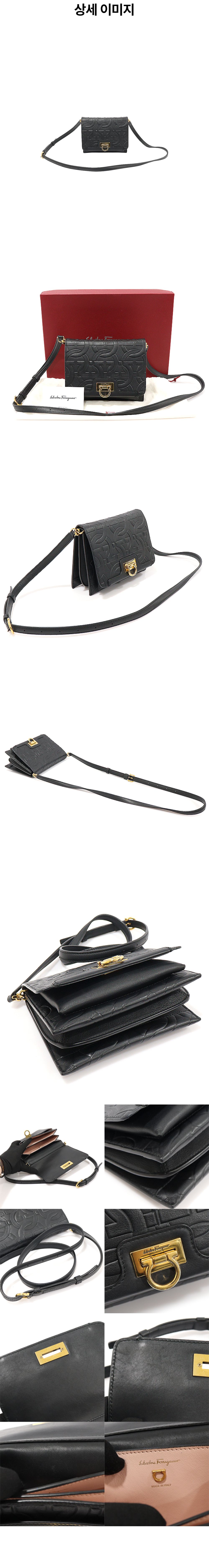 페라가모 21 I308 블랙 엠보스드 카프스킨 금장 간치니 트리폴리오 크로스백