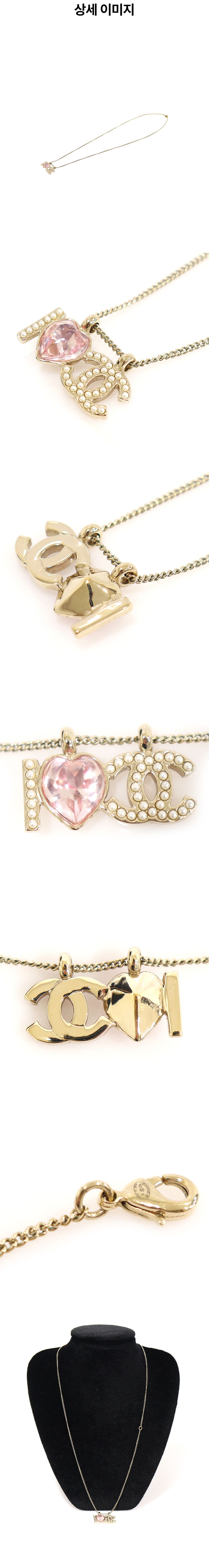 샤넬 AB8709 골드 메탈 핑크 크리스탈 하트 진주 펄 I Love CC 목걸이