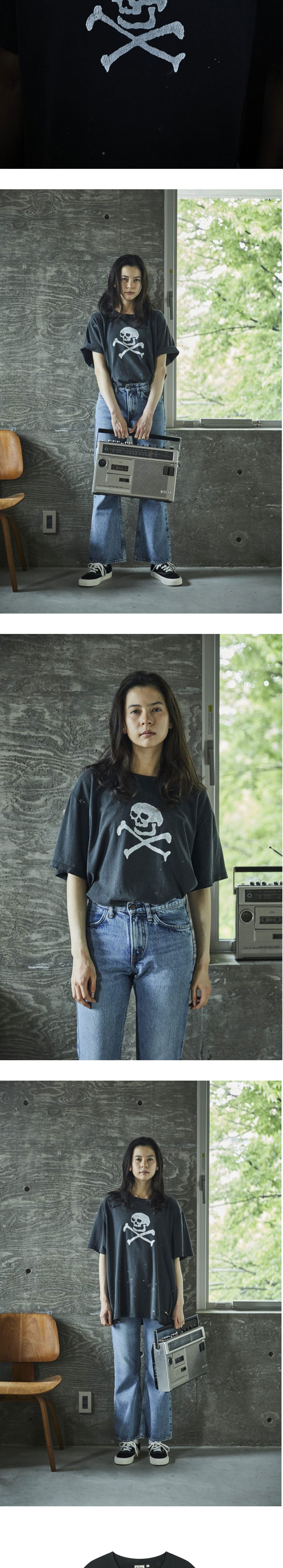 오어슬로우 빈티지 페이드 스컬 프린트 티셔츠 블랙 - 26SS