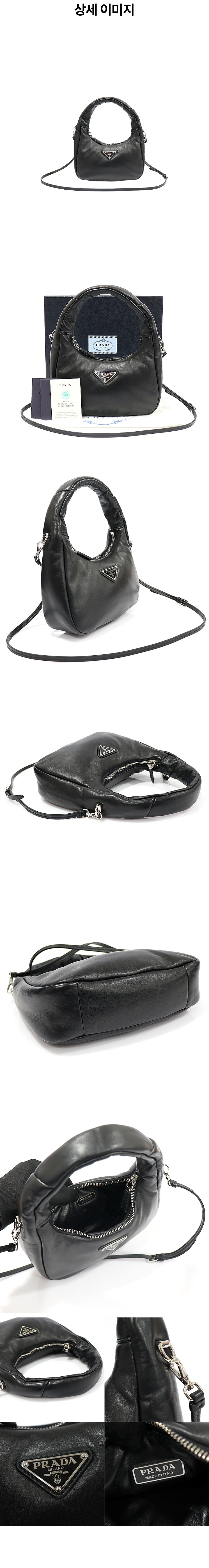 프라다 1BA384 블랙 소프트 패딩 나파 레더 은장 트라이앵글 토트 2WAY