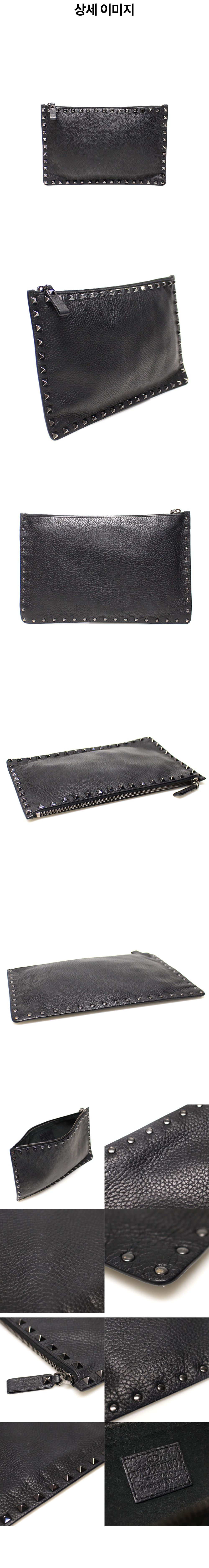 발렌티노 QW1P0269VSH 블랙 스탐파 알체 카프스킨 은장 락스터드 파우치 클러치