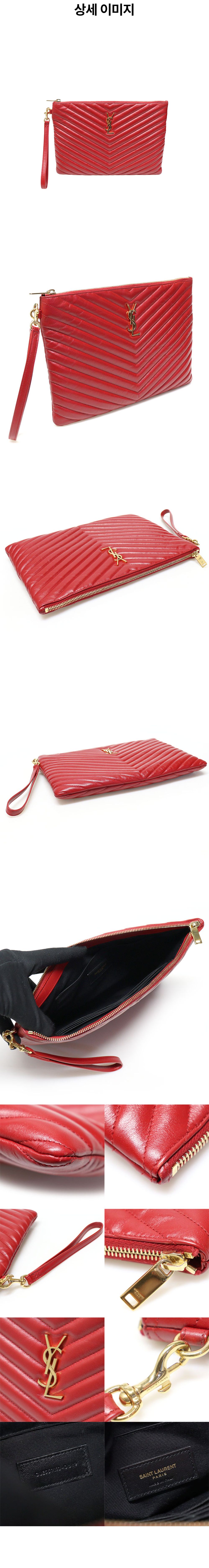생로랑 559193 레드 마틀라세 퀄팅 카프스킨 금장 모노그램 태블릿 뉴미듐 파우치 클러치