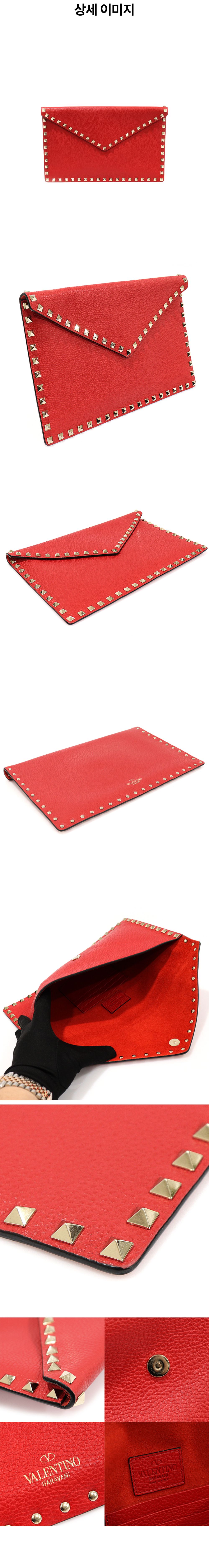 발렌티노 VW2P0P56VSH 레드 스탐파 알체 카프스킨 금장 락스터드 엔벨로프 파우치 클러치