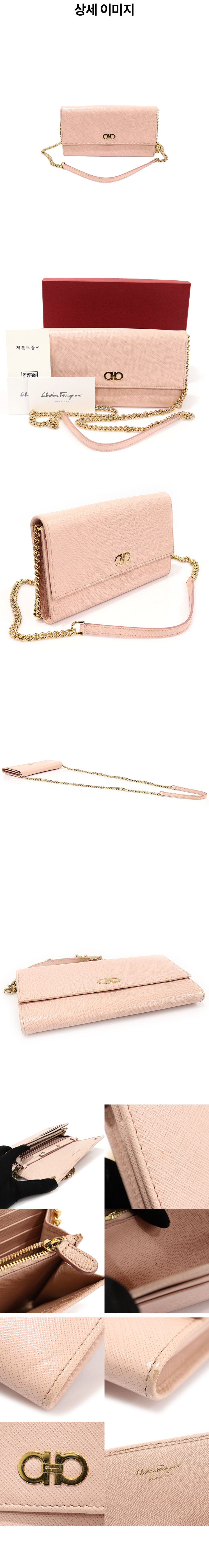 페라가모 22 C506 핑크 사피아노 레더 금장 더블 간치니 플랩 WOC 체인 크로스백