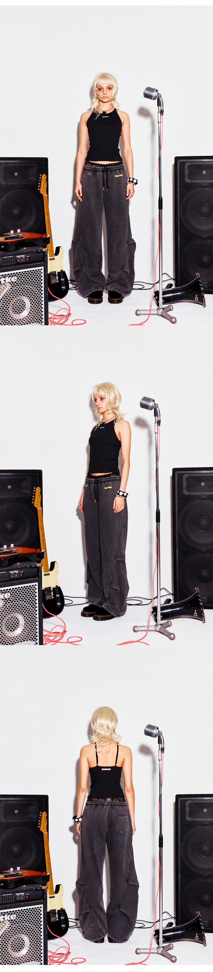 하이타이드 프랭키 커브드 심 스웻팬츠 블랙