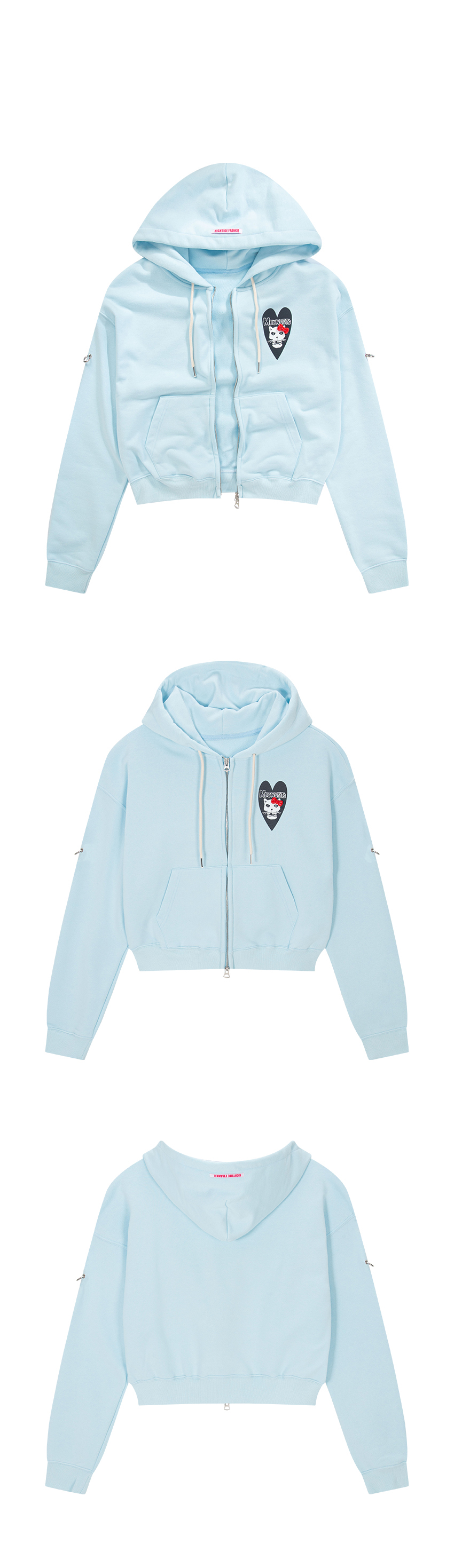 HIGHTIDE FRANKIE Meowsfits Crop Wire Zip-Up Hoodie Sky Blue