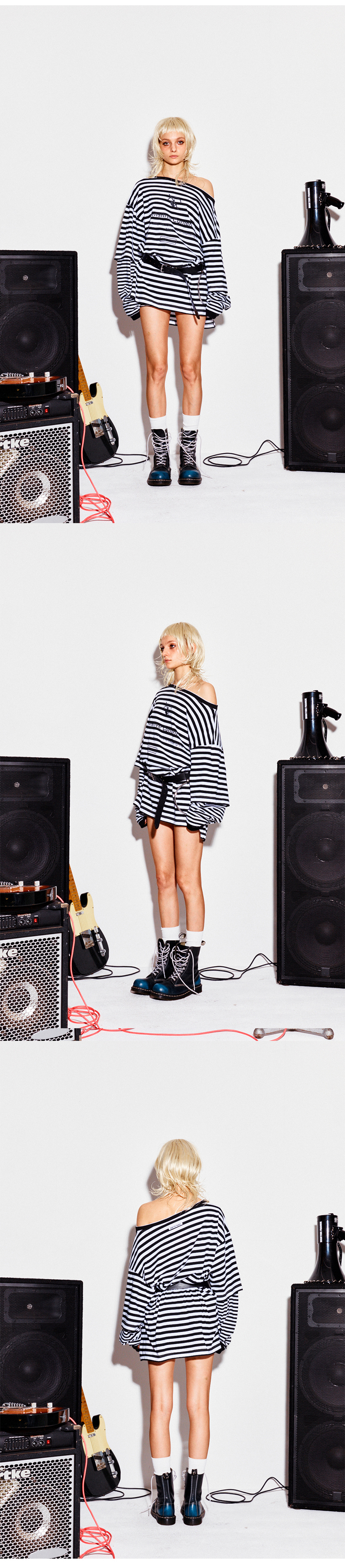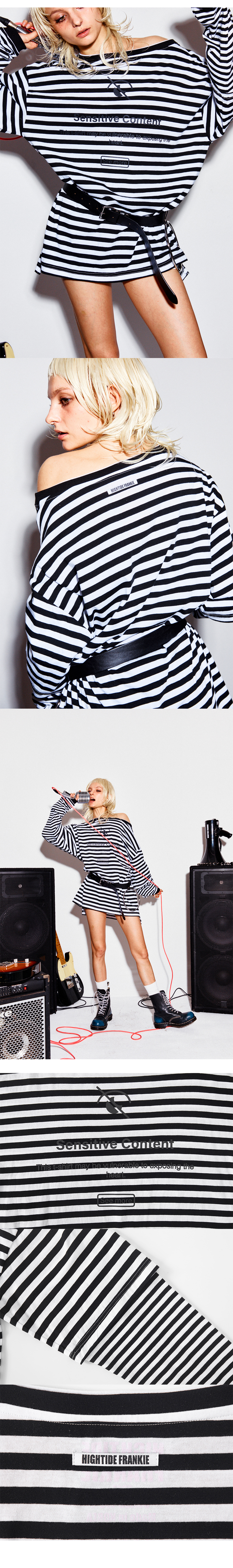 하이타이드 프랭키 오프 숄더 레이어드 스트라이프 탑 블랙