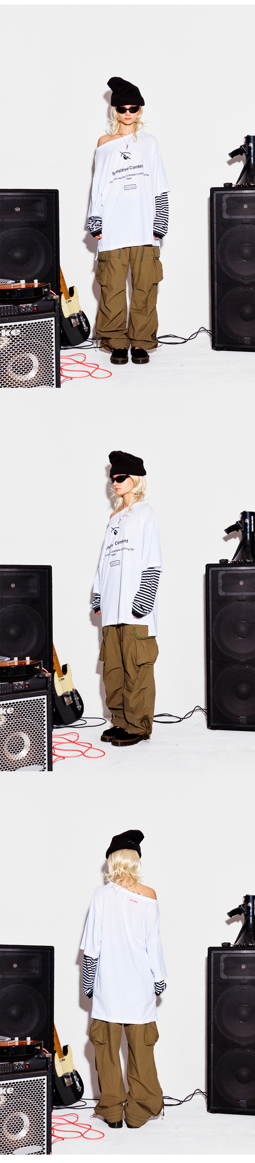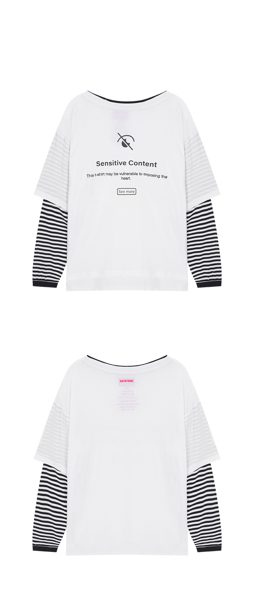 Model : Maria 171cm / 46kg 원피스 연출도 가능한 오프 숄더 레이어드 디자인의 제품으로 상당히 루즈한 핏의 연출이 가능한 사이즈 입니다. 중앙에 프린트된 문구속 heart 가 정말 heart 인지, 다른 의미를 포함 했는지 참 궁금 합니다. 한쪽 어깨를 드러내도록 디자인된 제품으로 소매는 레이어드된 긴 소매로 간절기는 물론 한여름에도 착용하기 좋은 아이템 입니다 -혼용률- 면 100% -주의- 옷을 뒤집어 찬물에 세탁 표백제나 강력한 세제 사용 금지 건조기 사용 금지 프린트 부분 다림질 금지 Made in Korea