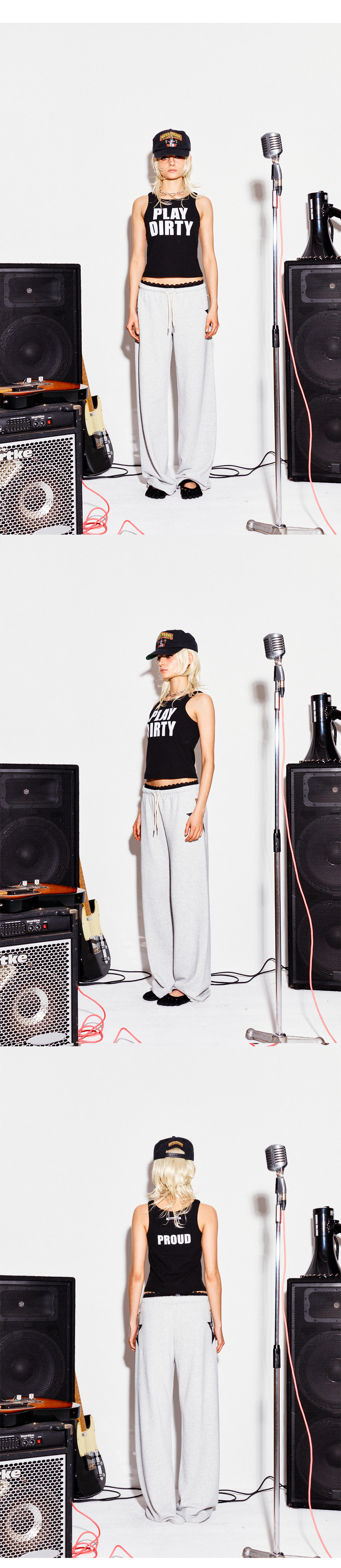 Model : Maria 171cm / 46kg 기본 탱크탑 제품으로 촘촘하게 짜인 골지 스판 혼방 원단으로 제작되어 편안한 착용감을 제공합니다 클래식한 실루엣에 앞면에는 "PLAY DIRTY" 뒷면에는 "PROUD" 문구가 프린트되어 있습니다 문구는 폴리우레탄 필름을 정밀하게 커팅한 뒤 열 프레스 방식으로 원단에 부착하는 PU 열전사 공정으로 작업되었습니다 이 공정은 심플한 아이템에 색다른 촉감과 소재의 재미를 더해줍니다 -혼용률- 면 95% 스판 5% -주의- 옷을 뒤집어 미지근한 물에 세탁 표백제나 강력한 세제 사용 금지 건조기 사용 금지 Made in KOREA