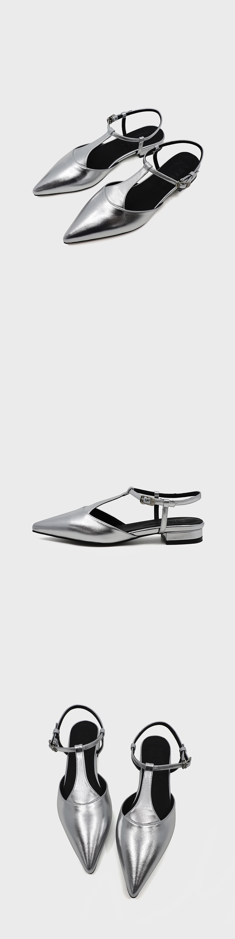 무드나잇 페어리 티스트랩 스틸레토 메리제인 플랫 l 실버