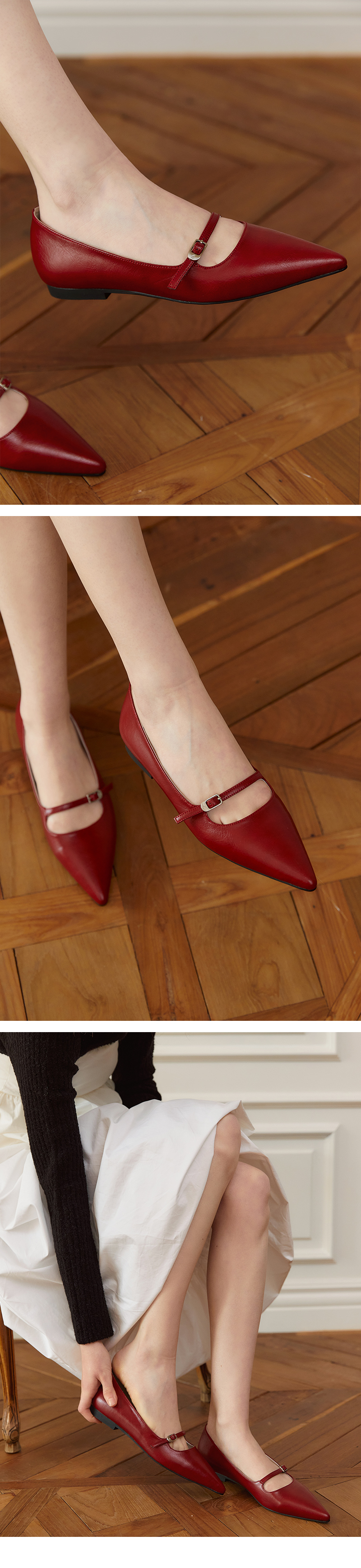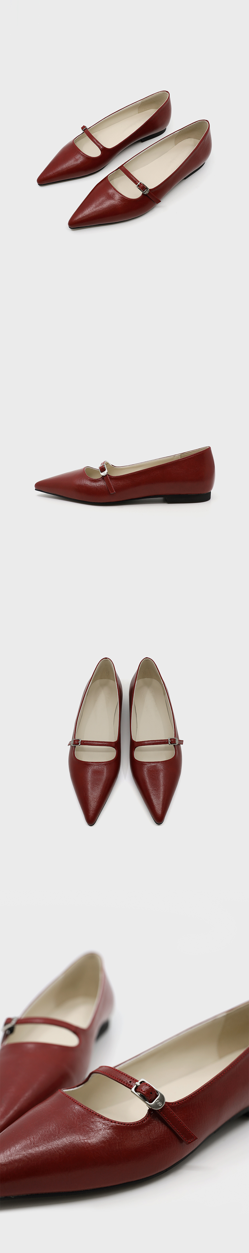 무드나잇 모린 스틸레토 메리제인 플랫 슈즈 l 딥레드