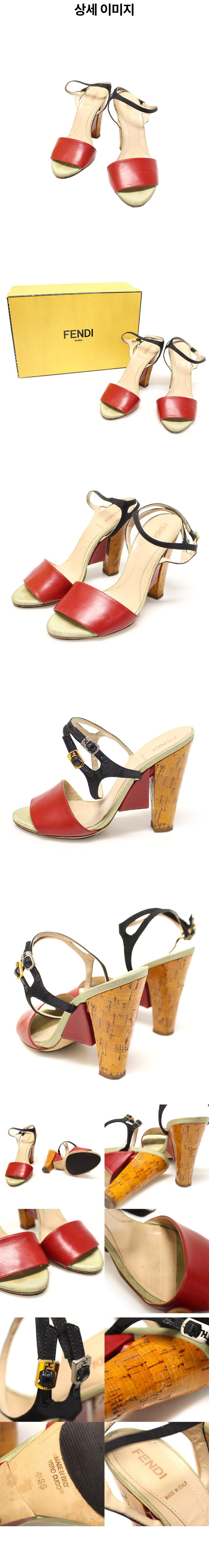 펜디 레드 레더 멀티 컬러 새틴 트리밍 스트랩 여성 샌들 36