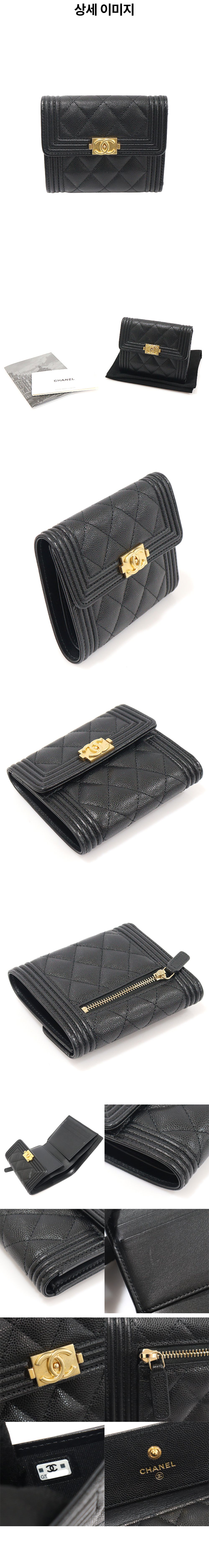 샤넬 A80734 블랙 캐비어 금장 보이 샤넬 반지갑 (내장칩)