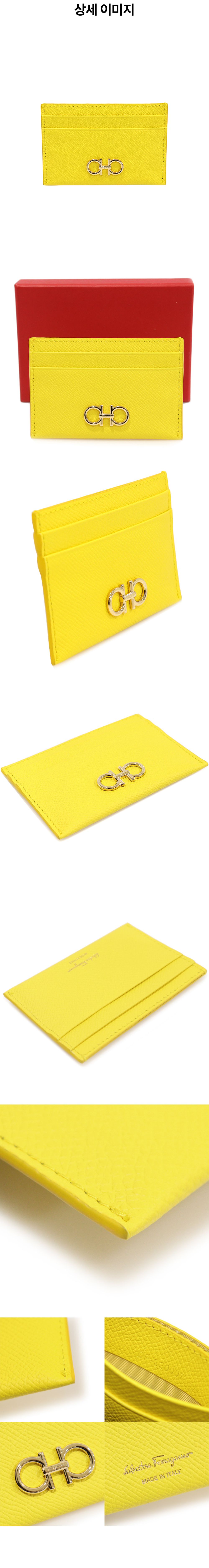 페라가모 220007 옐로우 카프스킨 금장 메탈 간치니 카드지갑