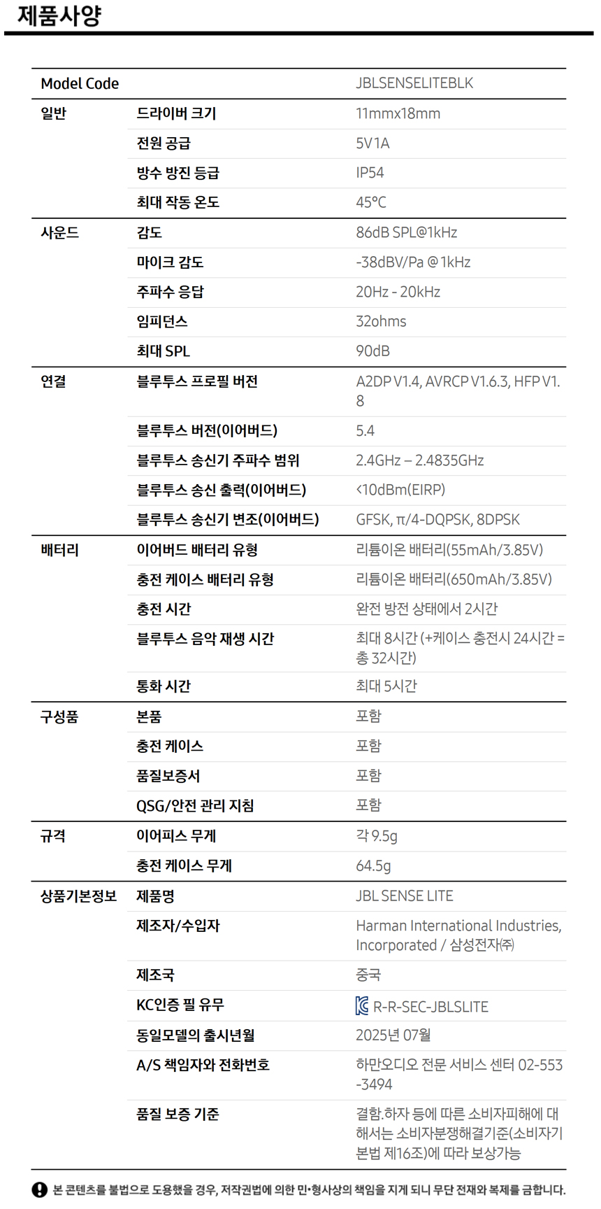 제이비엘 SENSE LITE 오픈형 블루투스이어폰