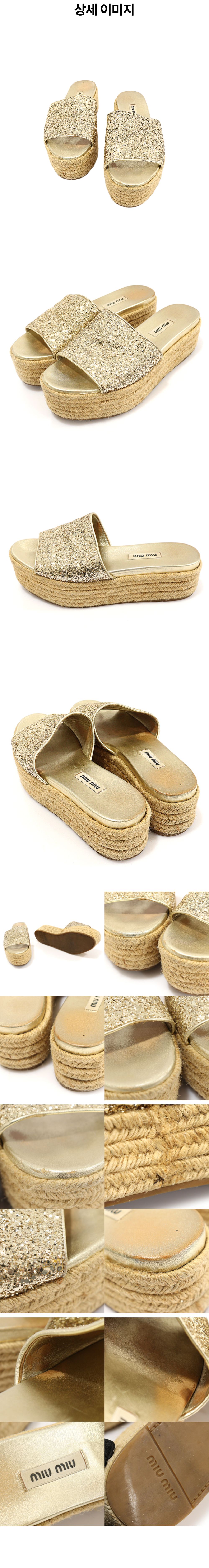 미우미우 5XX047 메탈릭 골드 글리터 에스파듀 플랫폼 슬라이드 여성샌들 37.5