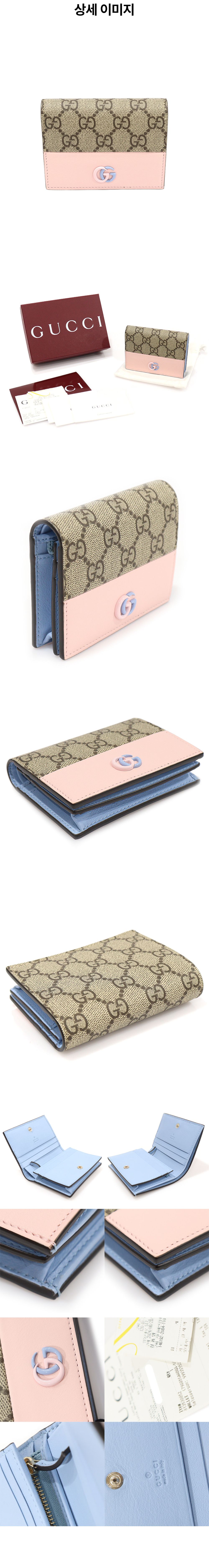 구찌 790055 GG 수프림 캔버스 파스텔 핑크 레더 GG 마몽 카드 케이스 반지갑
