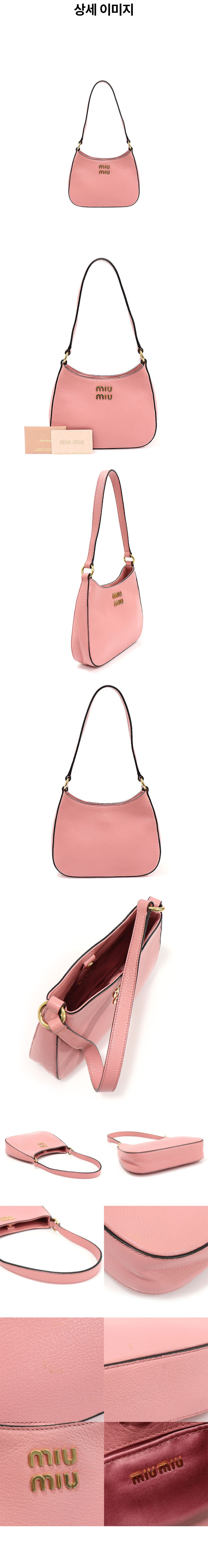 미우미우 5BC105 로사 핑크 마드라스 레더 금장 레터링 호보 숄더백