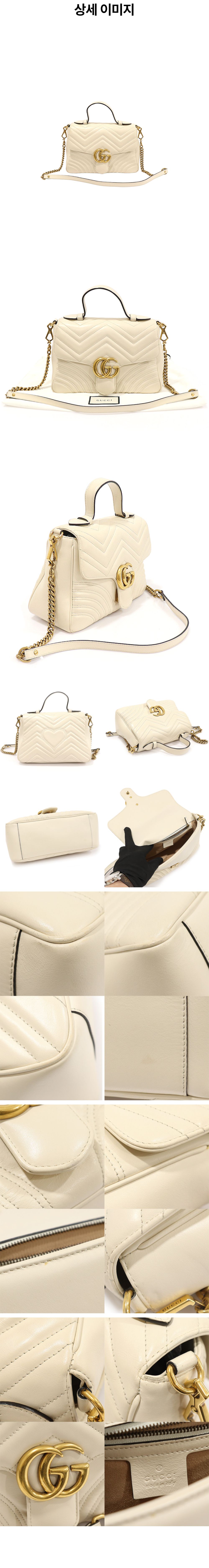 구찌 498110 화이트 마틀라세 쉐브론 금장 체인 GG 마몽 탑핸들 스몰 2WAY