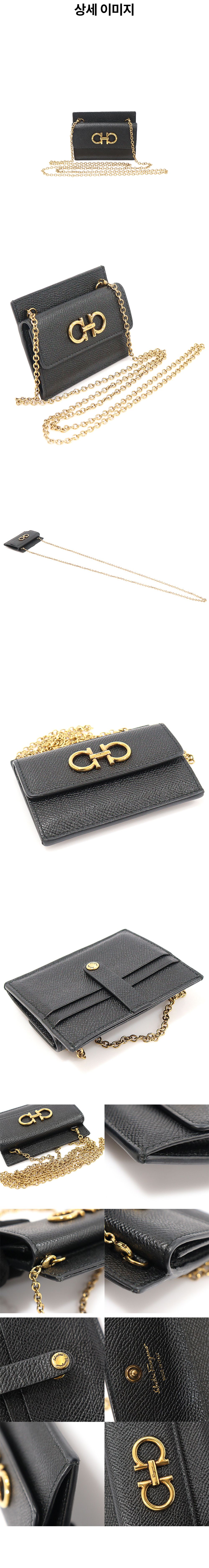 페라가모 22 0413 블랙 카프스킨 금장 간치니 체인 스트랩 카드지갑