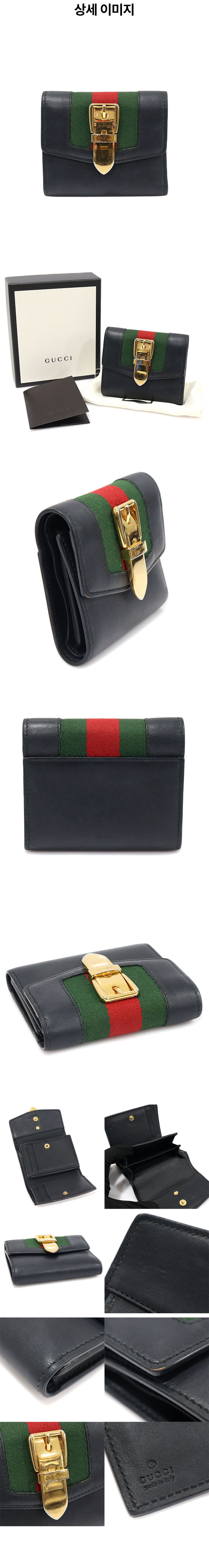 구찌 476081 블랙 레더 WEB 금장 실비 카드 케이스 반지갑