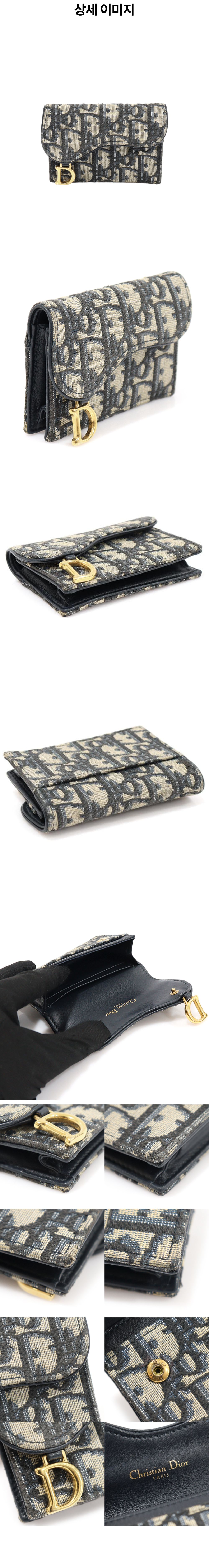 디올 S5611CTZQ 블루 오블리크 자카드 새들 플랩 카드지갑