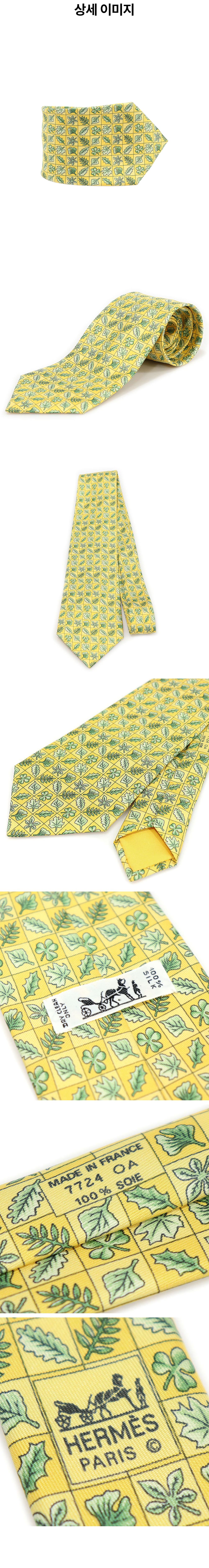 에르메스 7724 OA 실크 옐로우 리프 패턴 넥타이(실크 100%)