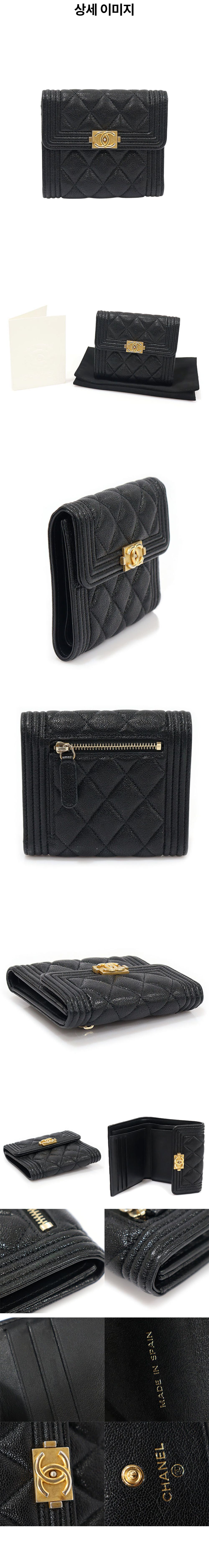 샤넬 A80734 블랙 캐비어 금장 보이 샤넬 반지갑 (26번대)