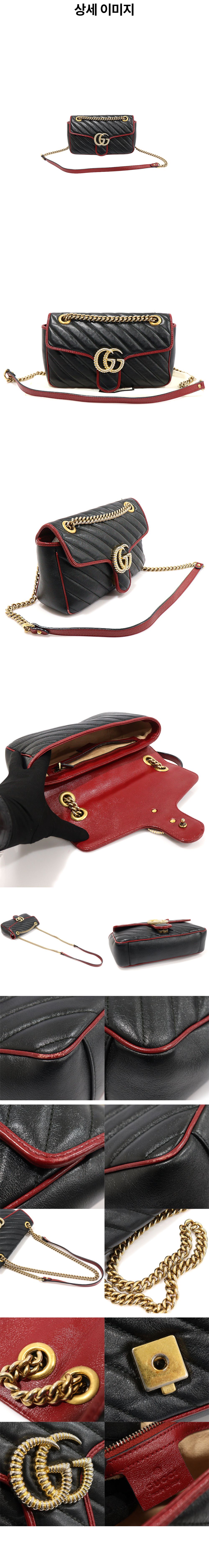 구찌 443497 블랙 레드 마틀라세 쉐브론 GG 마몽 스몰 숄더백