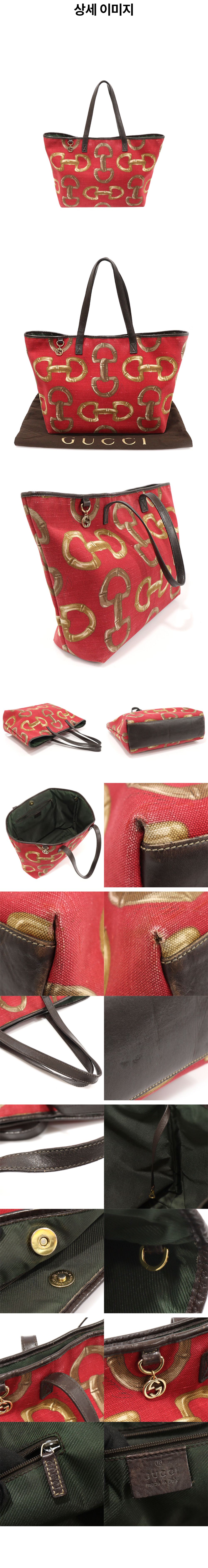 구찌 154402 레드 캔버스 브라운 레더 홀스빗 쇼퍼 숄더백