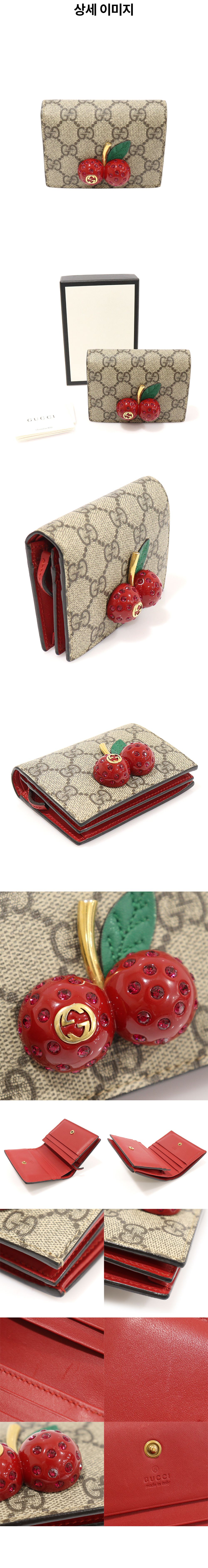 구찌 476050 GG 수프림 캔버스 체리 장식 카드 케이스 반지갑