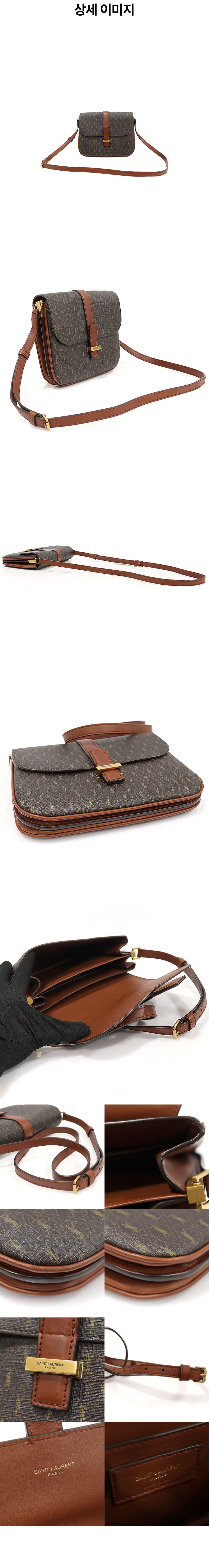 생로랑 568604 브라운 모노그램 캔버스 브라운 레더 금장 사첼 숄더백