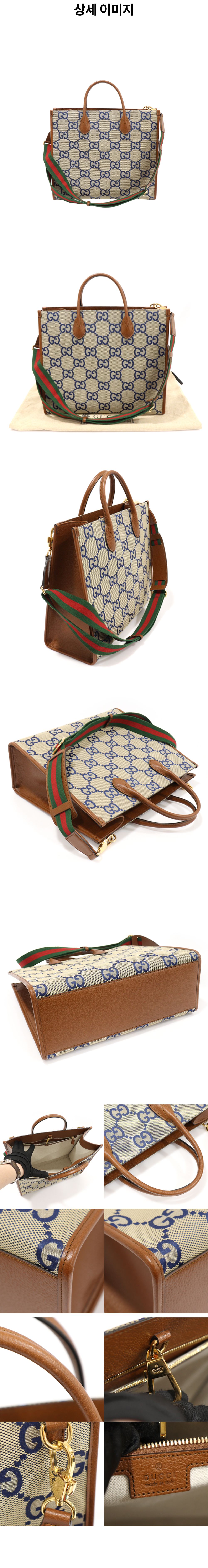 구찌 678839 점보 GG 캔버스 브라운 레더 토트 2WAY