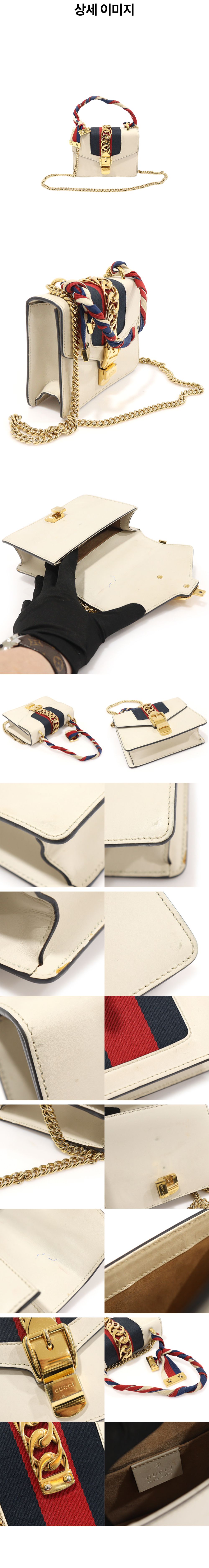 구찌 431666 화이트 레더 WEB 리본 실비 미니 체인 숄더백 2WAY