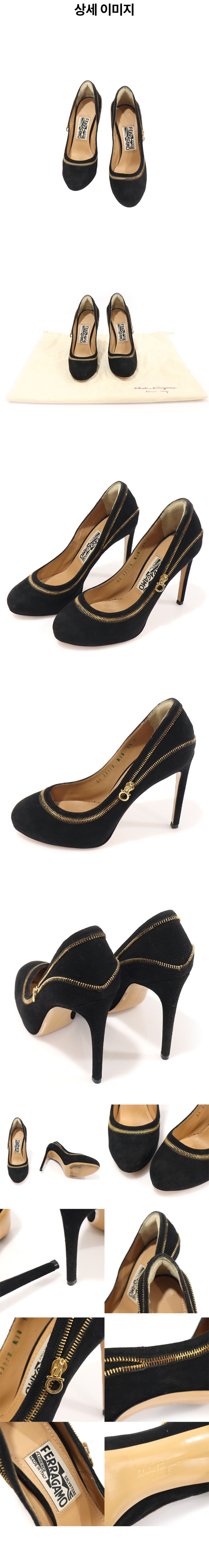 페라가모 0551324 블랙 스웨이드 간치니 지퍼 장식 RORY 펌프스 여성구두 5.5D