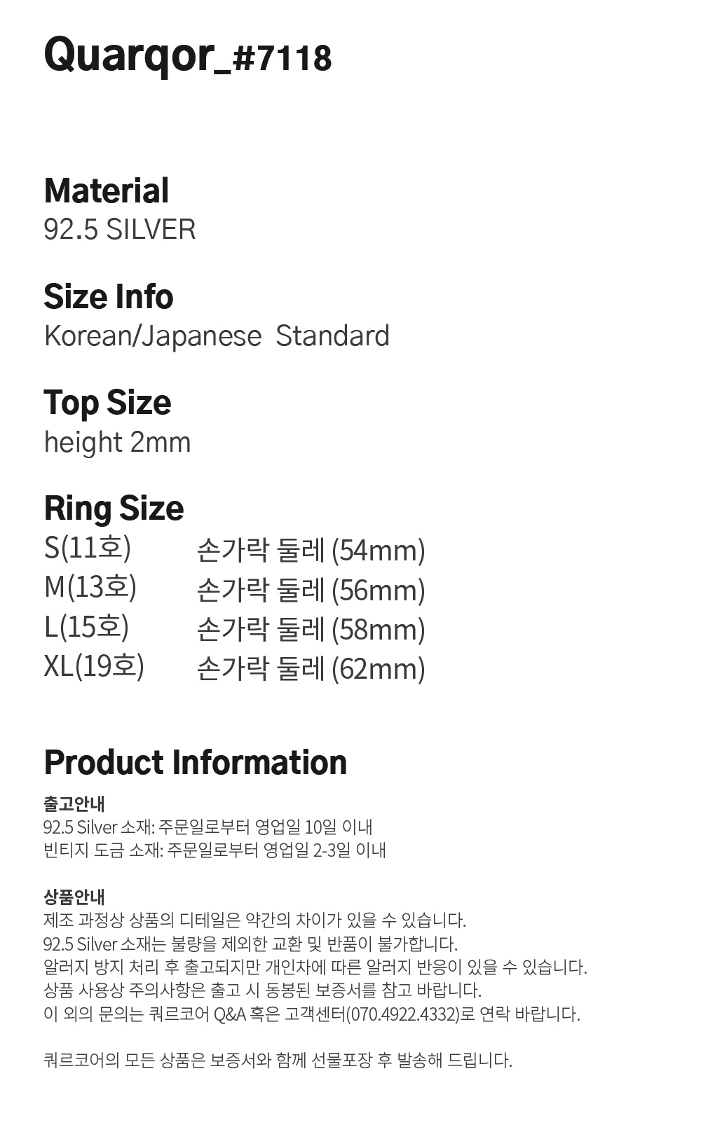 쿼르코어 #7118 실버92.5 링
