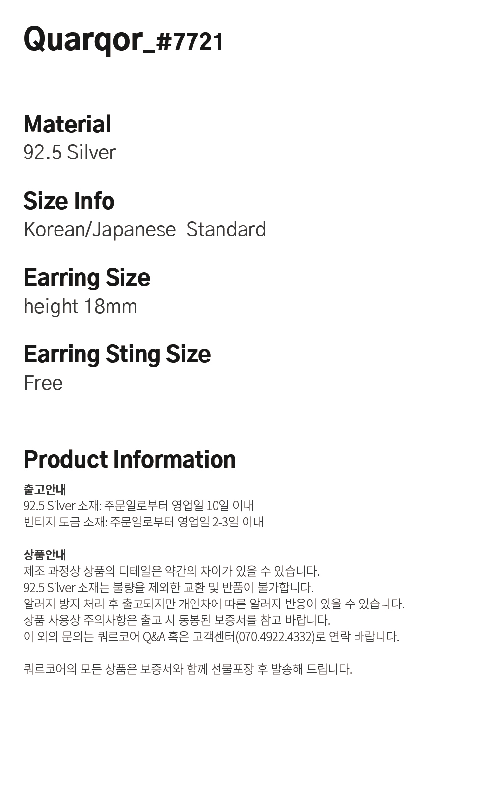 쿼르코어 #7721 실버92.5 이어링