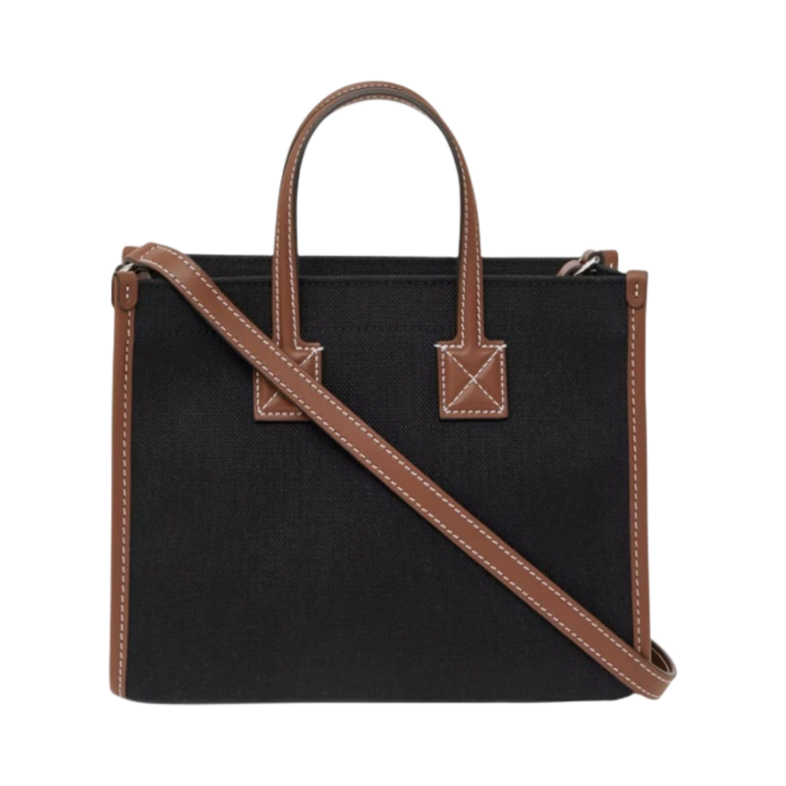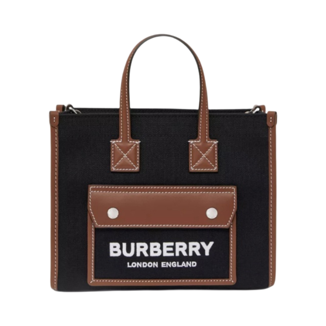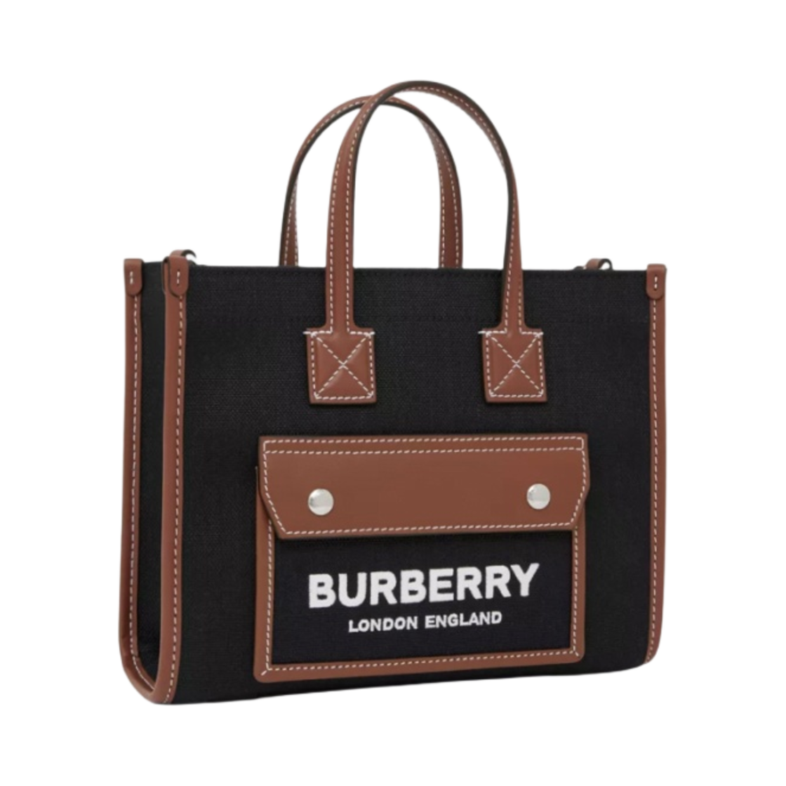 Burberry Mini Two-Tone Canvas and Leather Freya Tote Bag Black Tan