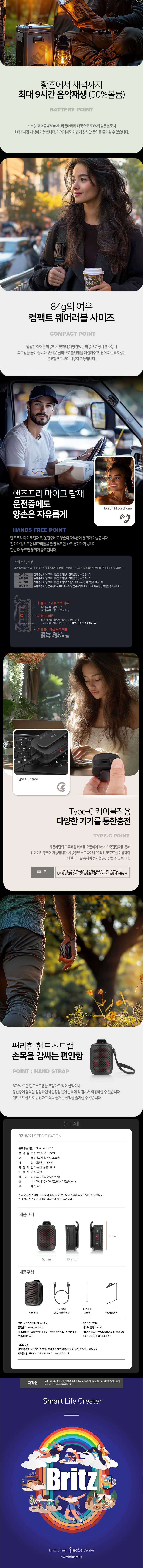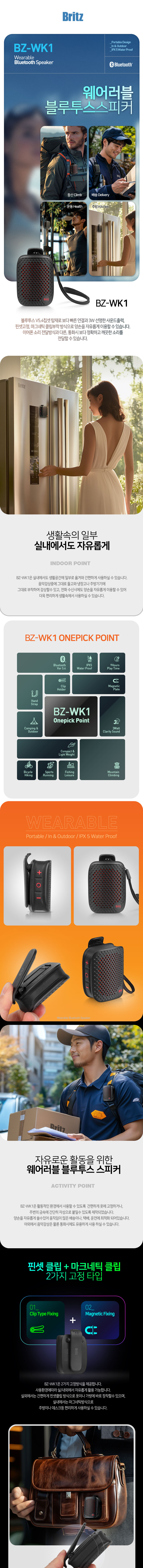 브리츠 등산 자전거 런닝 휴대용 블루투스 스피커 BZ-WK1