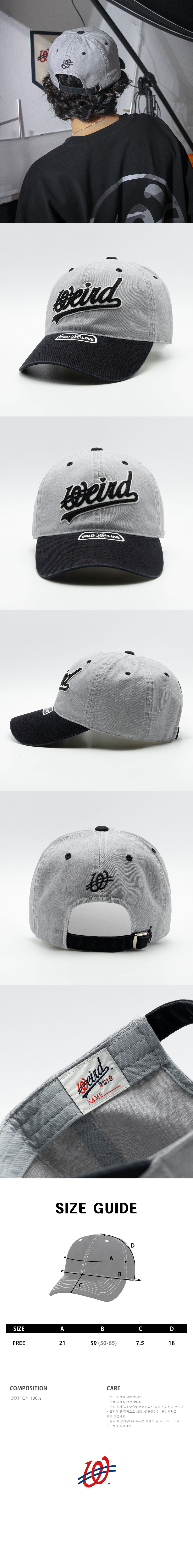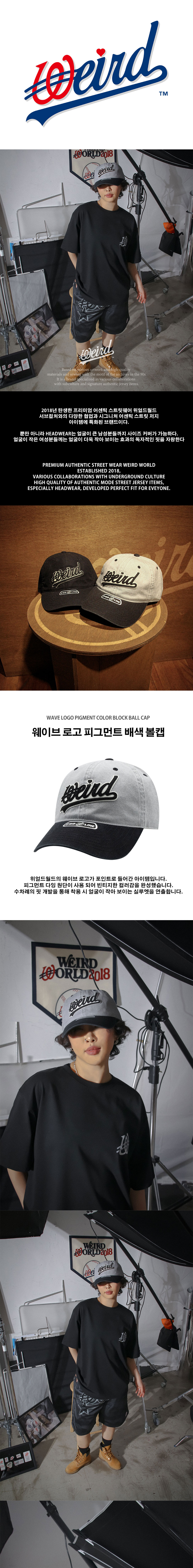 위얼드월드 웨이브로고 피그먼트 배색 볼캡